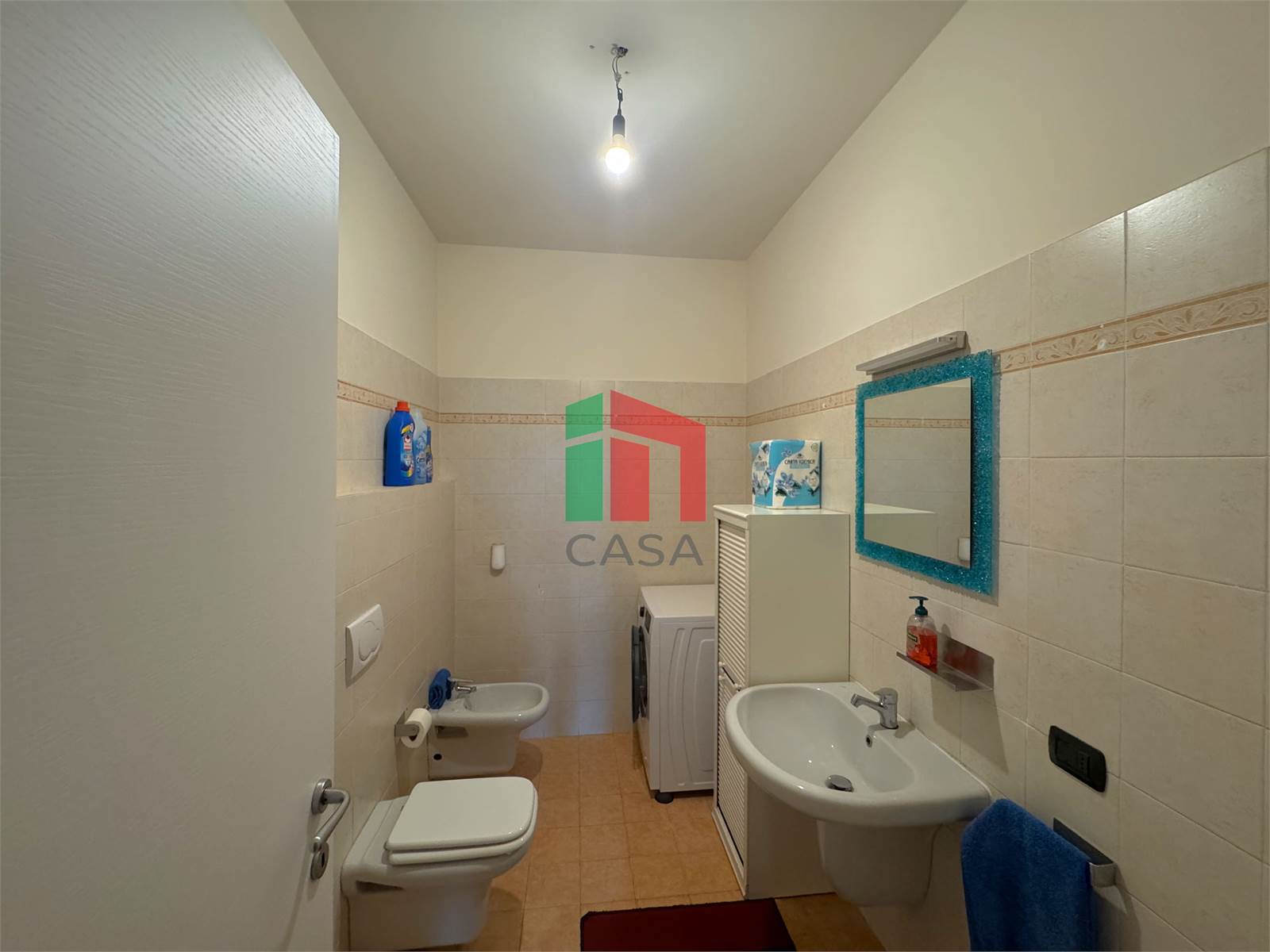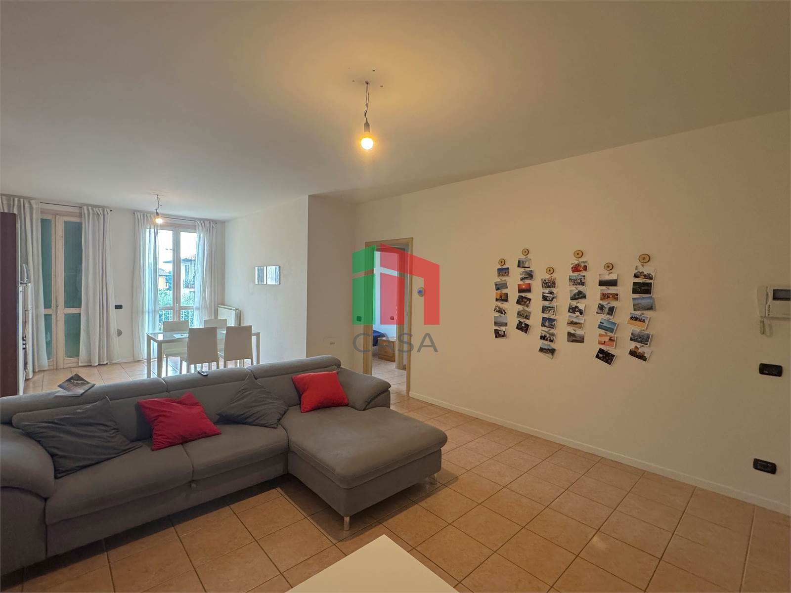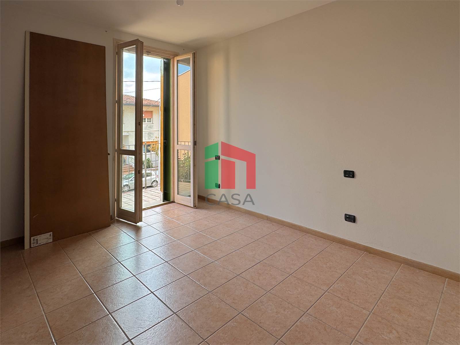 In zona centrale a Nuvolera appartamento trilocale al piano primo composto da soggiorno con angolo cottura e uscita sul balcone, due camere e bagno. Al piano interrato box auto singolo.